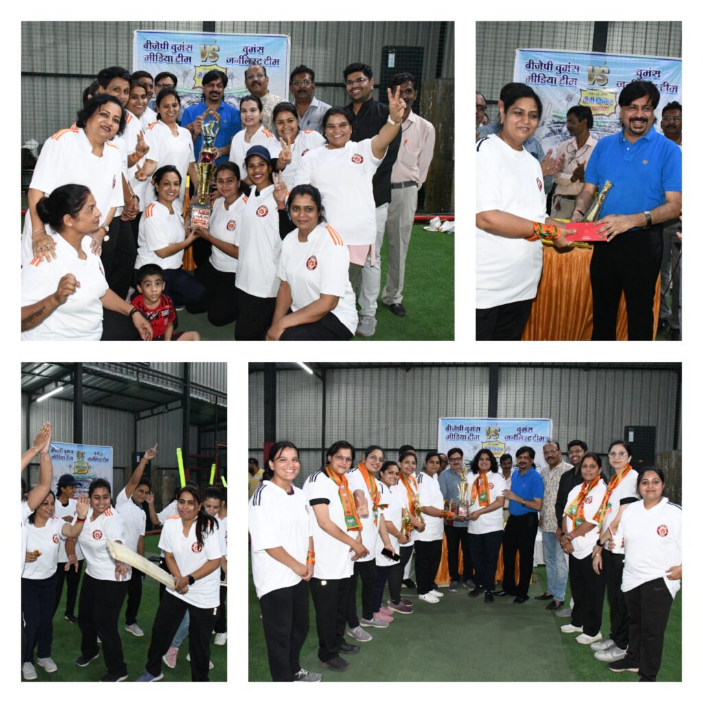 इंदौर 2 जून 2024, स्टेट प्रेस क्लब, मप्र द्वारा बीजेपी मीडिया वुमंस टीम और वुमंस जर्नलिस्ट टीम के बीच आयोजित मैत्री क्रिकेट मुकाबला जर्नलिस्ट टीम ने जीता। पहले बल्लेबाजी करते हुए बीजेपी टीम ने निर्धारित 10 ओवर में 129 रन बनाएं जवाब में जर्नलिस्ट टीम ने नौ ओवर में जीत का लक्ष्य प्राप्त कर लिया। विजेता खिलाड़ियों को आईडीसीए के चेयरमैन संजय लुणावत और राष्ट्रीय बाल अधिकार आयोग की सदस्य डॉ. दिव्या गुप्ता ने पुरस्कृत किया।