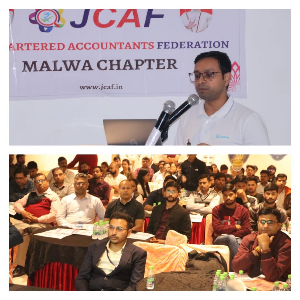 जैन चार्टेर्ड आकउंटेंट फेडरेशन इंदौर मालवा चैप्टर के 100 से भी अधिक सदस्यों की संख्या ने टैली सेशन मे हिस्सा लिया। उपस्थित सदस्यों को राजेश सेलोट अध्यक्ष जैन चार्टेर्ड आकउंटेंट फेडरेशन इंदौर मालवा चैप्टर ने सम्बोधित किया एवं इस आयोजन की महत्ता बताई। उपस्थित सदस्यों कृष्णश्री सोलूशन्स के डायरेक्टर राहुल शर्मा, टैली सोलूशन्स प्रा. लि. के बिज़नेस मैनेजर सुदीप सिंह, जेसीएएफ के सेकरेटरी कॉल अपूर्व कंसल, देवास जेसीएएफ के वाईस प्रेजिडेंट नितिन जैन, एवं चार्टेर्ड अकाउंट एवं अकाउंटेंट गण उपस्थित रहे।