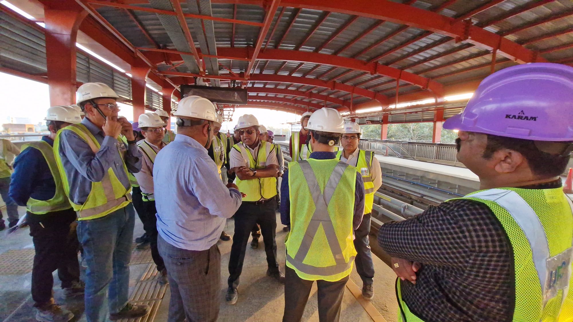 निर्माण कार्य प्रगति को गति देने के उद्देश्य से आयोजित निरीक्षण कार्यक्रम में सिविल, सिस्टम, रोलिंग स्टॉक, ट्रेफिक, सिग्नल्लिंग आदि प्रमुख कार्यों से सीधे जुड़े अधिकारियों और कंसल्टेंट प्रतिनिधियों एवं contractors के शीर्ष प्रतिनिधियों ने भाग लिया ।