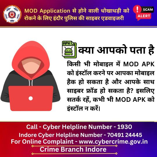 *(7). फ्रॉड होने पर तत्काल NCRP पोर्टल या इंदौर पुलिस द्वारा संचालित साईबर हेल्पलाईन नंबर 7049124445 पर शिकायत करें।*